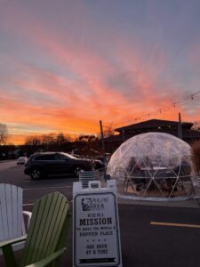 Then Pulpit Rock Brewing Company is delicious second stop. In the winter, they have igloos, and in the summer they have a wonderful patio with umbrellas. They also have a quaint taproom and are right along biking trails. Many whom stop enjoy their pastry sours. The patio is dog friendly. And if you get hungry right next door in an old laundromat is The Landing Market home to delicious food and coffee that you can take next door to Pulpit or stay for a while and enjoy a quieter atmosphere.