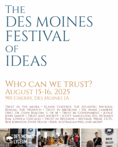 We all want to know who we can trust in the media these days. Next weekend, The Lyceum Movement is hosting the third annual Des Moines Festival of Ideas, a celebration of thought and culture for the whole community. The only event of it’s kind in the Midwest, the Festival will feature speakers from The Atlantic, The Dispatch, Aspen Institute, Iowa State, and more, to explore great ideas with beer and food. Check out the full lineup at the link below. See ya there!