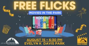 Cross that last item off your summer bucket list and enjoy an outdoor movie! Inside Out 2 is playing on the big screen in Evelyn K. Davis Park. Admission is free, but bring your own blanket, chairs, and snacks.