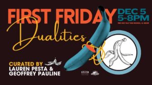 It is the first Friday of the month, and you know what that means: First Friday at Mainframe Studios! This month, experience DUALITIES, “a multimedia exhibition exploring the tension and dialogue between conceptual and material opposites.” Plus, the third floor gallery will feature a special exhibition by CASA (Creative Artists Studios of Ames) through the Rural Arts Program. As always, food and drink from local vendors will be available for purchase.