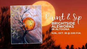 Join Painting With a Twist at Brightside Aleworks for an afternoon of painting, sipping, and fun! Class is $44, which includes two hours of instruction to paint “Harvest Moon,” all supplies, and a canvas that is yours to keep! While you are welcome to bring your own snacks, wine and apps will be available for purchase.