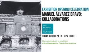 This Friday, the Des Moines Art Center is hosting the opening celebration of “Manuel Álvarez Bravo: Collaborations” in the Anna K. Meredith Gallery! “Gather to view the art and enjoy this free community event. Manuel Álvarez Bravo is sometimes called the father of Mexican photography, but he did not reach the heights of his field on his own. He achieved his place in history through conversations and connections with some of the greatest minds of the 20th century in Mexico and abroad. With over 100 photographs and ephemera, this exhibition illustrates that working with others was a central part of the artist’s creative process.”