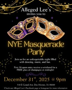 Des Moines’ improv troupe is bringing you their NYE show! Comedy-lovers or people who simply want a break from the crowds and bar-hopping, this show is created by the audience, for the audience! That’s right, each show is different and is based on audience suggestion, so you never know what you’re going to get.