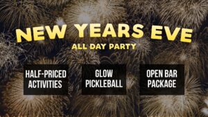 Starting at 11 a.m., Smash Park is celebrating the end of 2025 with fun all day long! Hit up the pickleball courts, arcade games, or sit around with friends for a night of drinking and dining. If you book up to two weeks in advance you can use promo code NYE26 for half-price activities. There are also Open Bar Packages and Glow Pickleball to keep the party going until the clock strikes midnight.